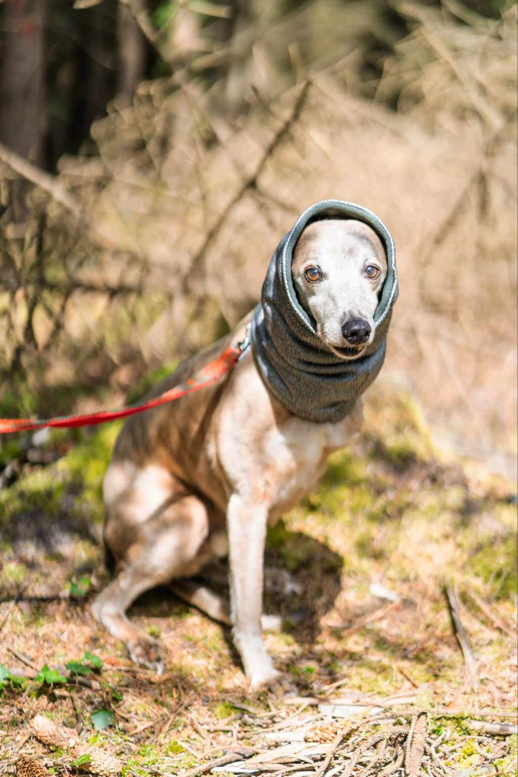 The Hound Snood is designed longer to cover the ears while worn, though we understand that not all dogs are immediately comfortable with this.