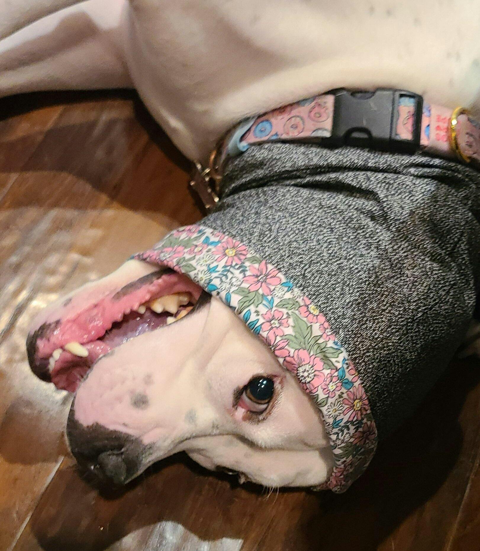 Carefully designed, with the fewest panels for increase strength to a wider neck, so the excess material is likely to be grabbed rather than your dog's neck.